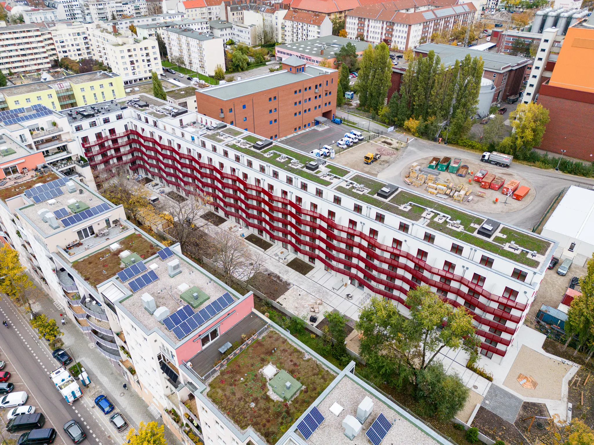 Errichtung eines Wohnquartiers mit der temporären Nutzung für Menschen mit Fluchterfahrung und gemeinschaftlichen Nutzungen inkl. einer Gewerbeeinheit sowie einer Kita. Es entstehen insgesamt 146 Wohnungen, von denen die Hälfte barrierefrei sind. Darüber hinaus ist eine Kita für 60 Kinder sowie ein Kieztreff geplant. Es handelt sich um eine modulare Gebäudestruktur. Die Erstnutzung erfolgt durch das Landesamt für Flüchtlingsangelegenheiten (LAF). Die Nachnutzung ist für Studierende zum Wohnen gedacht. ibj.berlin war mit der Planung der technischen Gebäudeausrüstung beauftragt. ibj.berlin ist mit der Planung und Fachbauleitung der technischen Gebäudeausrüstung beauftragt.